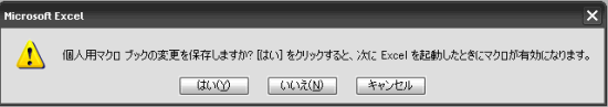 そして、Excelを終了させますが、このとき、「変更を保存しますか」と