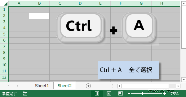 Ctrl + A キー でワークシート全体を選択します。