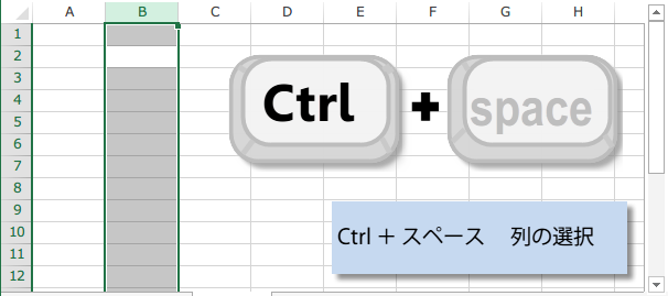 Ctrl + スペース 列の選択