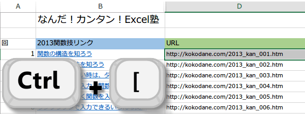 Ctrl + [ 数式が直接参照しているセルを選択