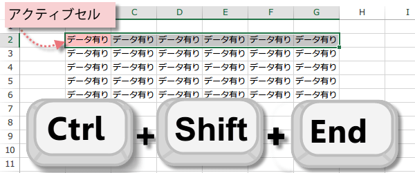 Ctrl + Shift + End アクティブセルから最後のセルまで選択
