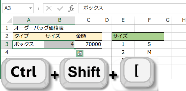 選択のショートカットその2データ範囲と数式参照セル