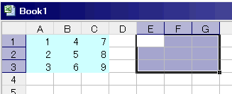コピー先の範囲E1:G3を選択します。