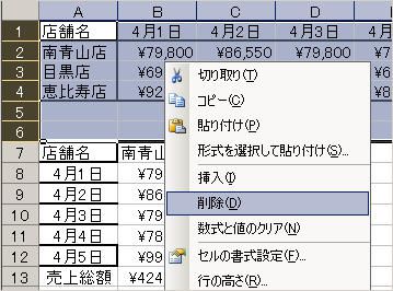 行と列の入れ替わった表ができました。必要なくなった元表を削除する