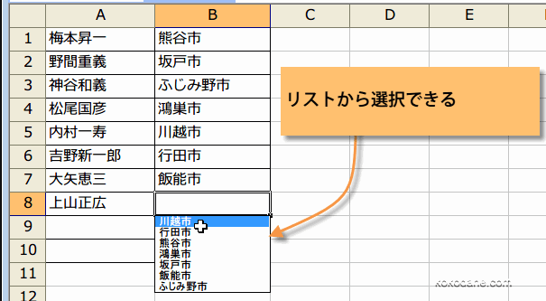 会社名の入力など、同じ文字列を何度も入力するのは面倒です。同じ列に入力されたデータならリストから簡単に選択、入力できます。