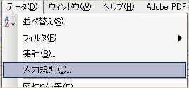(2) メニューバーの「データ」−「入力規制」をクリック。