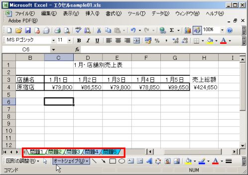 「売上表」を題材にしたシートがあります。