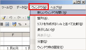 ここでは、3つのシートを表示させたいので、もう一度メニューの「ウィンドウ」→「新しいウィンドウを開く」の手順を繰り返します。