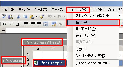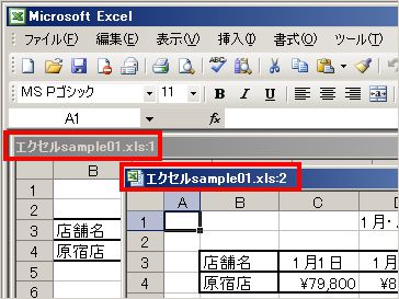 操作法〜同じファイル内の別シートを並べて表示させるには