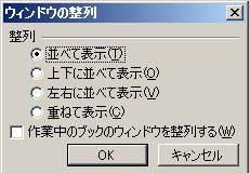 「ウィンドウの整列」画面が表示されますので、任意の並べ方を選んで「OK」ボタンをクリックします。ここでは「並べて表示」を選択しました。