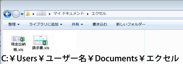 (1)たとえばマイドキュメントにフォルダを作り保存しているとします。Windows7だと、「C:\Users\ユーザー名\Documents\エクセル」、XPでは、「C:\Documents and Settings\ユーザー名\My Documents\エクセル」に以下のファイルを保存していて毎日仕事の時にファイルを開いているとします。
