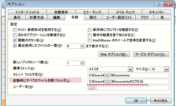 「C:\Documents and Settings\ユーザー名\My Documents\エクセル」と入力しました。