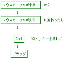 マウスカーソルが十字から矢印に変わったら、「Ctrl」キーを押します。