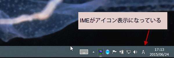 デフォルトではIMEがアイコン表示になっています。