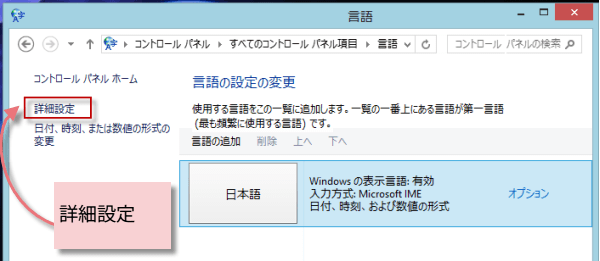 (3)言語のダイアログが表示されたら、詳細設定をクリックします。