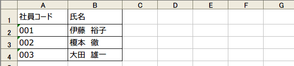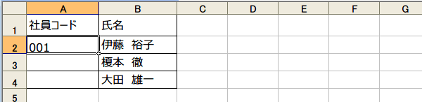 すると、このように左詰で文字列として、001〜が表示されるようになります。前ゼロ付きの3桁の数値する