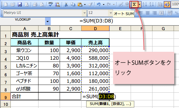 (オートSUM)買{タンひとつで合計計算もラクラク!