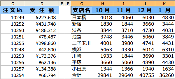 (5)同じシート上の別な表に設定した見出しを適用ししてみます。
