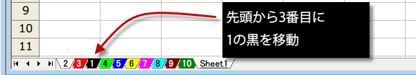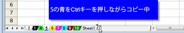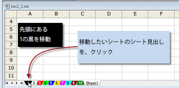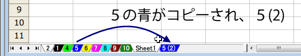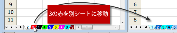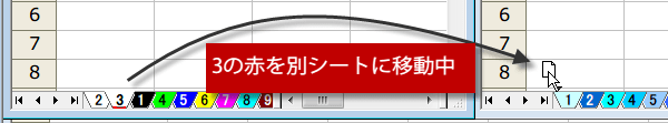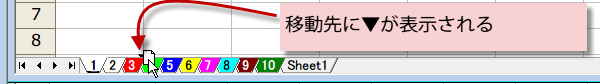 (5)移動したいシートの見出しをクリックして、移動先のワークシートの目的の位置までドラッグします。