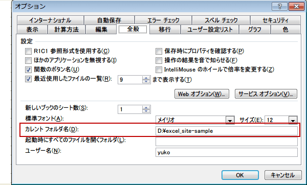 エクセル作業フォルダを変更するには