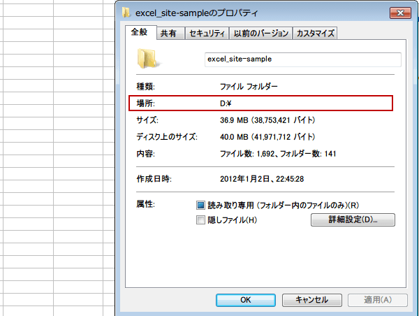 フォルダのパスが分からない時は、フォルダを右クリックして、メニューからプロバティを