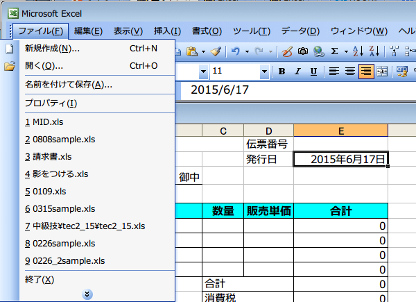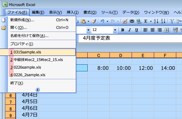 「ファイル」メニューをクリックすると、下のほうに最近使ったファイルリストが表示されます。(これは誰もが知ってますね。)