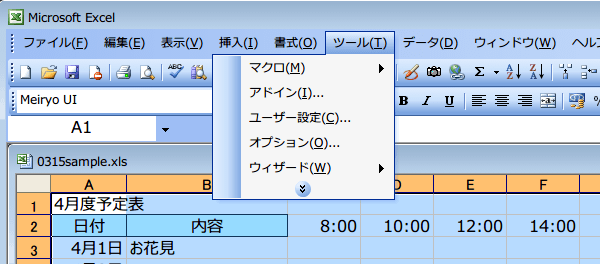 ≪操作法≫(1)「ツール」→「オプション」を選択します。
