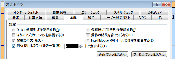 (2)「オプション」ダイアログボックスから「全般」タグを選択します。