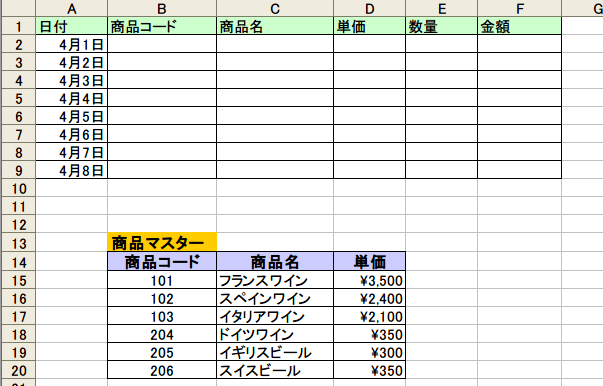 売上集計表で商品コードを入力すると商品名と単価を自動表示してくれると、仕事が非常にはかどります。今回はその式を作成します。