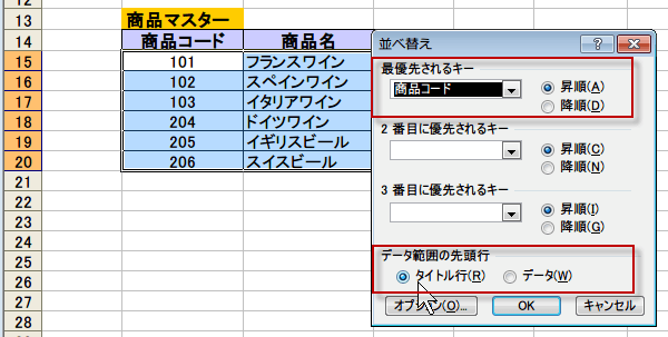 1.商品コードをキーに昇順に並べ替えておく必要があります。