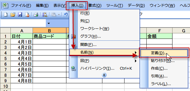 2.VLOOKUP関数で参照しやすいように商品マスターには名前をつける。