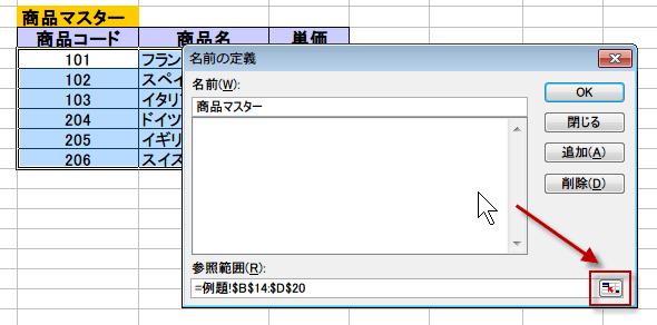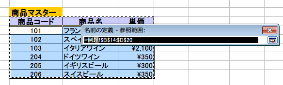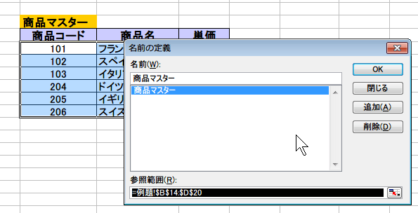 VLOOKUP関数で参照する商品マスターに名前をつけておく