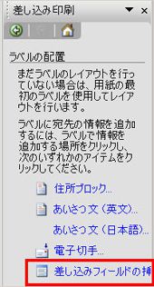 (11)次にガイド画面に戻るので、ラベルの配置をクリックし、差し込みフィールドの挿入を選択します。