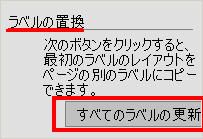 (14)ガイド画面の、ラベルの置き換えで「すべてのラベルを更新」ボタンをを選択します。これで、最初のラベルのレイアウトをページの別のラベルにすべてコピーすることができます。