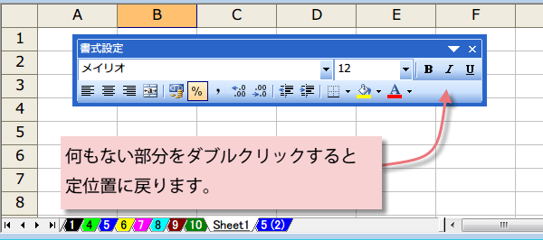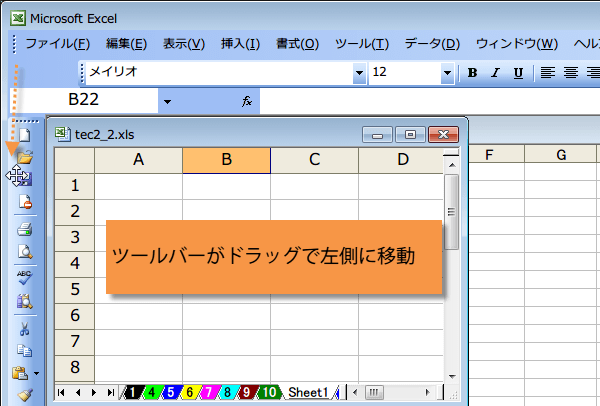 同様にワークシート上にドラッグすると、ツールバーを切り離してパレットにすることもできます。