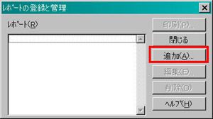 メニューの「表示」→「レポート」を選択。「レポート」画面で「追加」ボタンをクリックします。