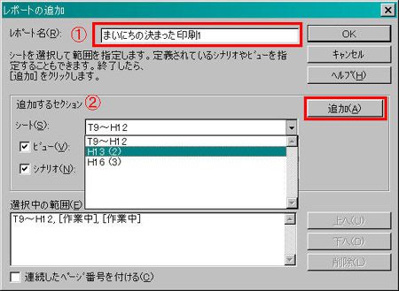(3)「レポートの追加」画面で、印刷するシートを登録します。
