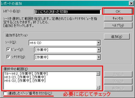 (4)上記の操作を繰り返し行い、印刷するシートを「選択中の範囲」に設定します。最後に「OK」ボタンをクリックします。