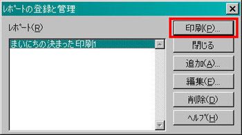 (5)「レポートの登録と管理」画面に戻りますので、設定したレポート名「毎日の決まった印刷」を選択し、「印刷」ボタンをクリックします。