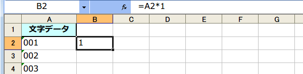 たとえば、A列 に文字列扱いの数字が入力されているとして、隣のセルに =A2*1