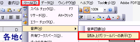 (3)それでは「読み上げツールバー」で音声でデータを読み上げてもらいます。