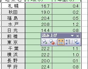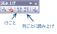 列ごと(縦方向)に読み上げさせたい時は「列ごと」ボタンを、クリックします。