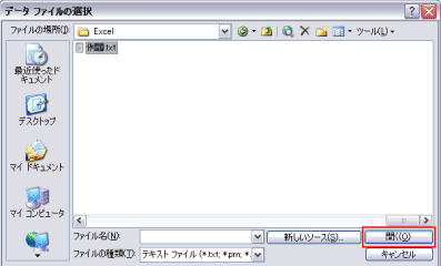 すると次に、「データファイルの選択」ダイアログボックスが表示されます。
