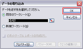 (2)インポートしたい位置(サンプルではセルA1)をクリックします。