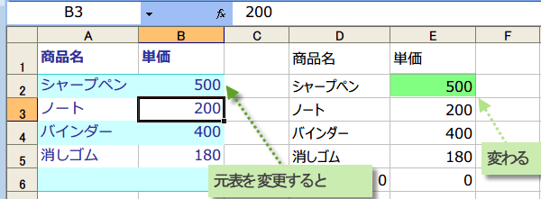 元データが変更されると参照先のデータも自動的に変更されたら、手間が省けますね。