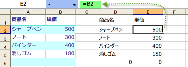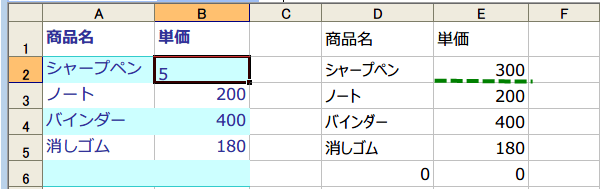 (4)ここで、B1セルのシャープペンの単価を500に変更してみましょう。