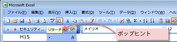 ポップヒントとは、マウスでクリックするだけでメニューやツールバーボタンの内容を知ることができる便利な機能です。