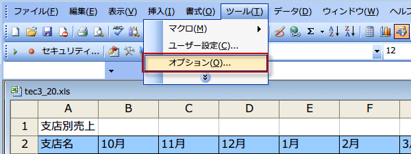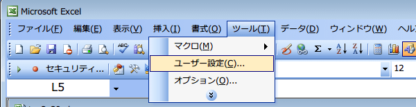 メニューから、ツールを選択し、 ユーザー設定をクリック