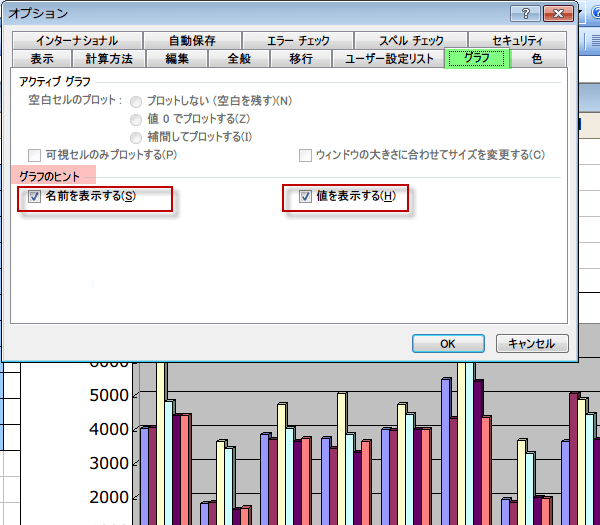 もしグラフのポップヒントが表示されない場合は、以下の手順で表示できます。