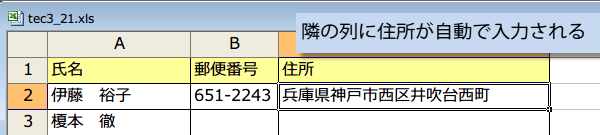 郵便番号を入力するだけで簡単に住所を入力したい〜エクセルの中級技3